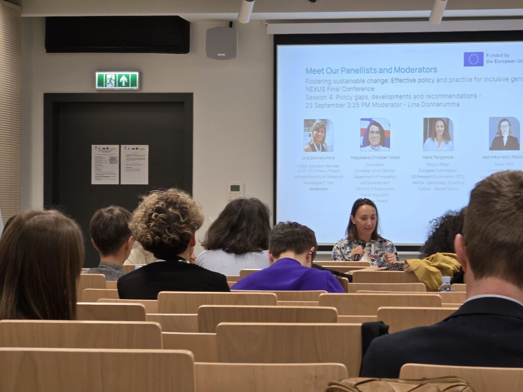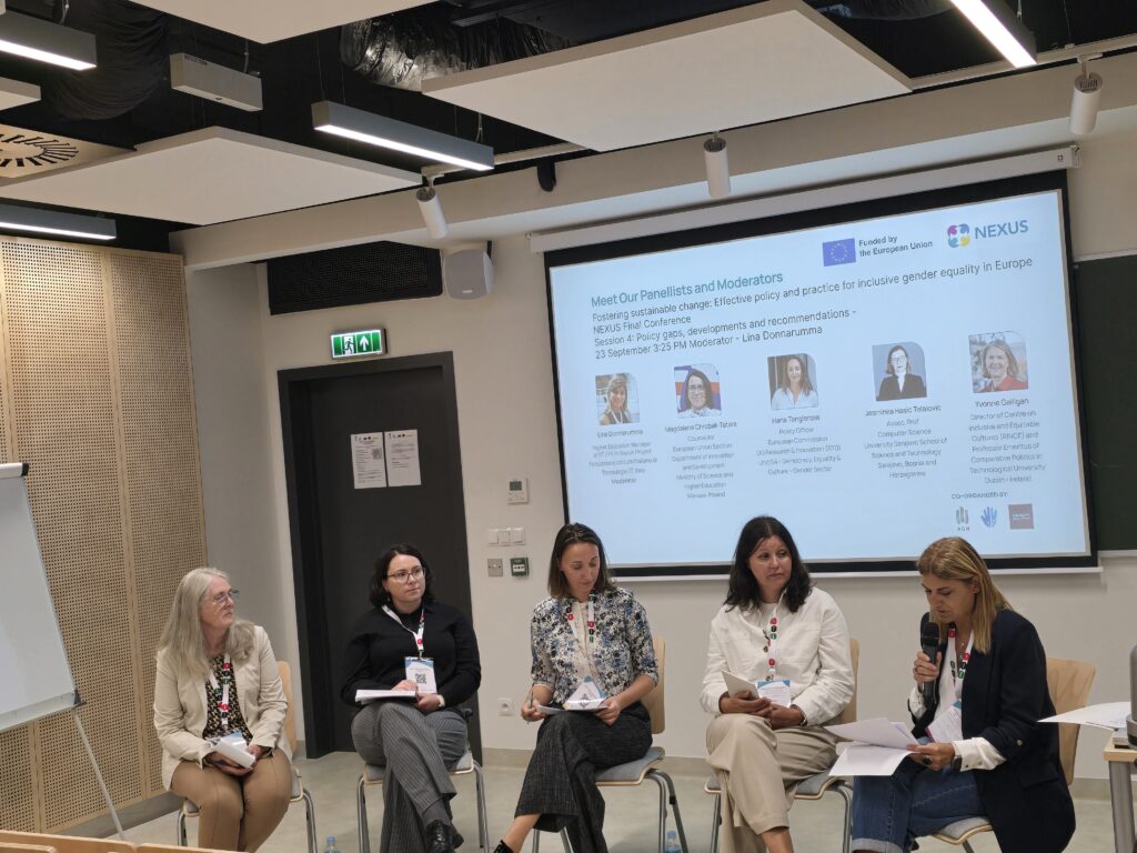 Under the moderation of Lina Donnarumma, the panel brought together experts and policymakers who shared reflections on lessons learned from NEXUS and other EU initiatives — identifying areas where stronger policy coordination, sustained funding, and institutional commitment are needed to turn equality plans into lasting change.