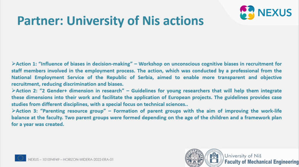 From advancing inclusive Gender Equality Plans to fostering sustainable institutional change — the NEXUS Actions highlight how collaboration, knowledge sharing, and commitment can drive progress across Europe. 🌍✨ Nis University