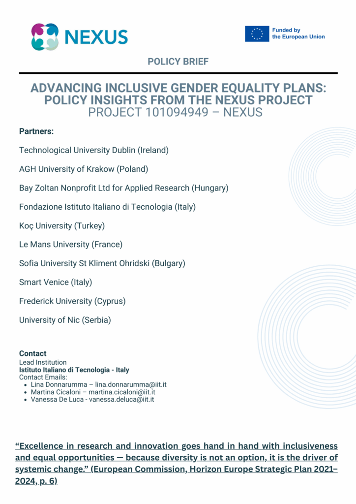 Advancing Inclusive Gender Equality Plans: Policy Insights from the NEXUS Project
